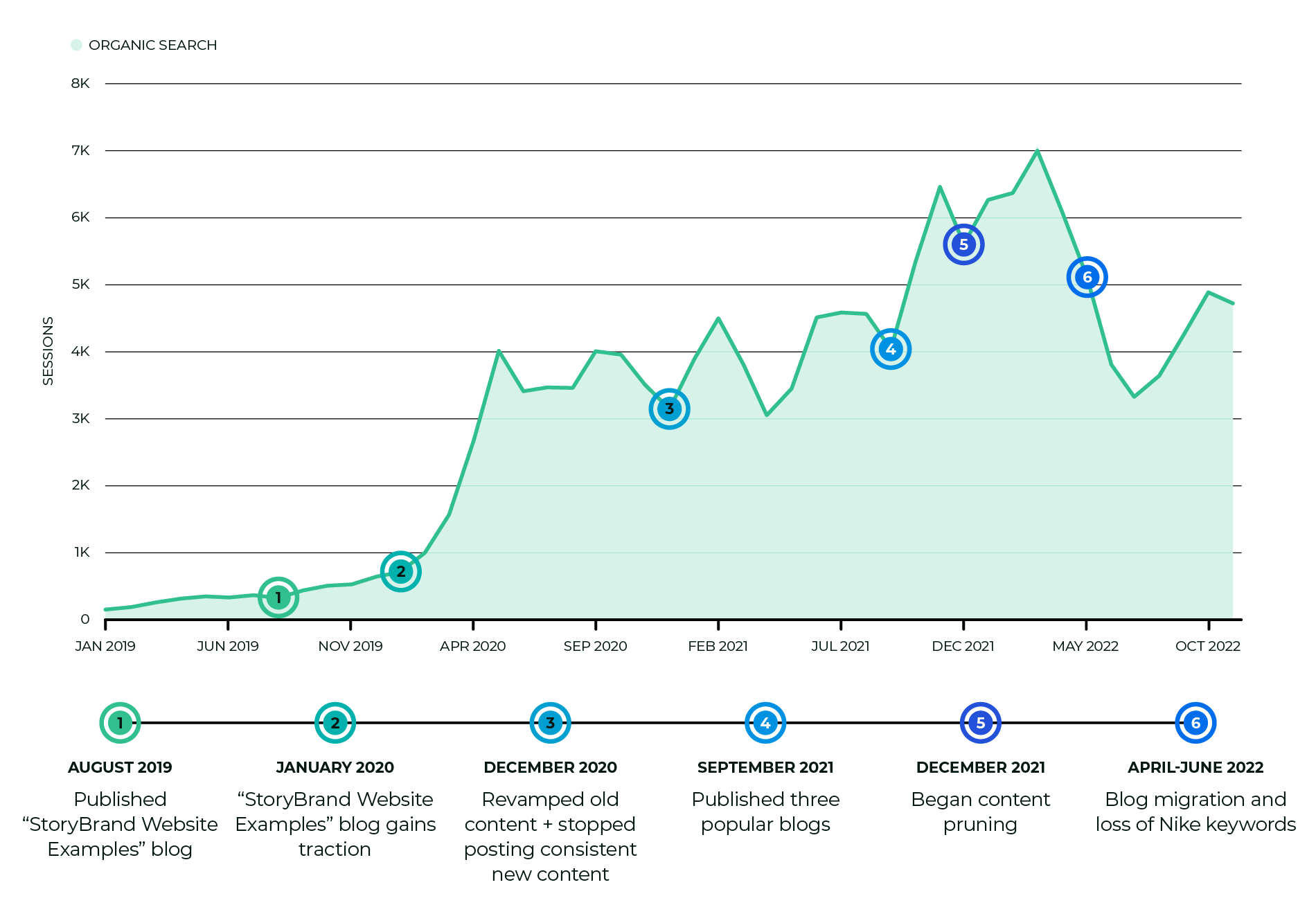 In 2019, we were focused primarily on StoryBrand, so many of our blog articles revolved around the framework. In August of that year, we created How to Get the Most Out of the StoryBrand Framework, which was our top blog for over a year. It was also the reason our traffic finally started taking off.